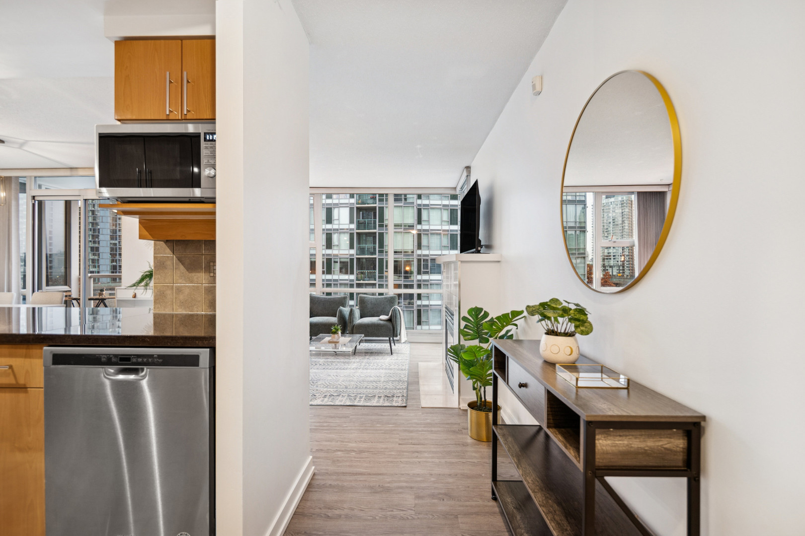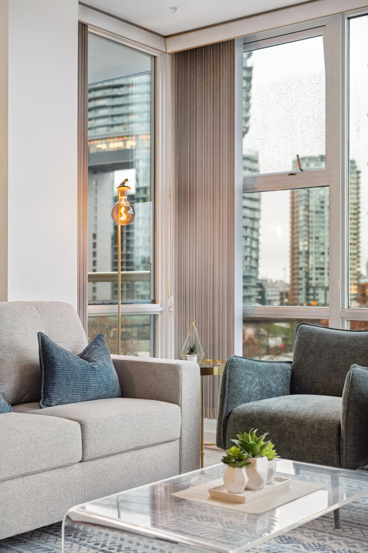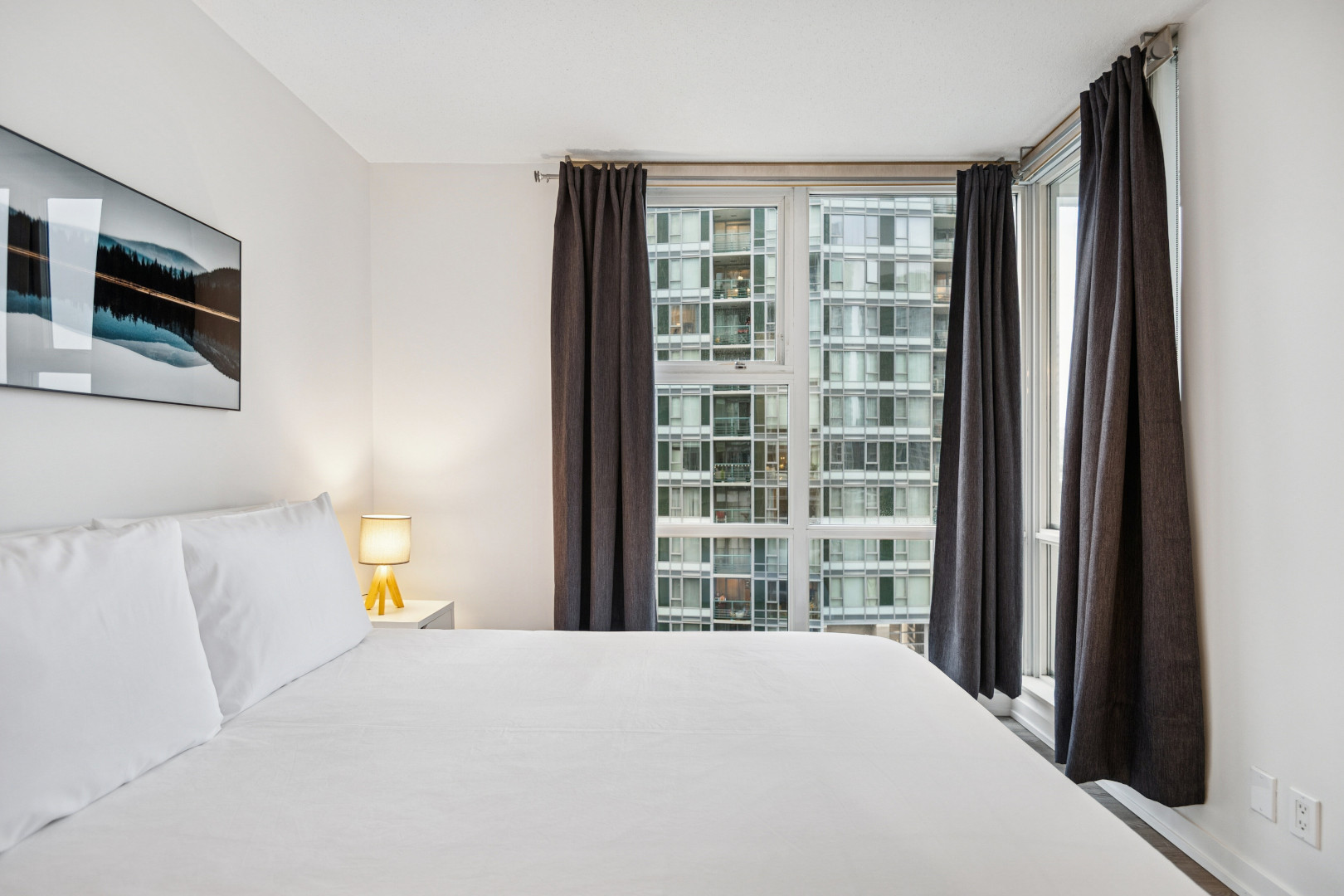 We guarantee our imagery. All properties are a minimum 90-day stay. Stays of 30-days or more are tax-exempt. All properties are non-smoking. Pet-friendly properties available on request. All properties include: fully equipped kitchen, complete hospitality-quality linen package, in-suite laundry, one parking spot, local telephone, 750 mbps wired + wifi internet, monthly housekeeping, utilities, and 24/7/365 support.